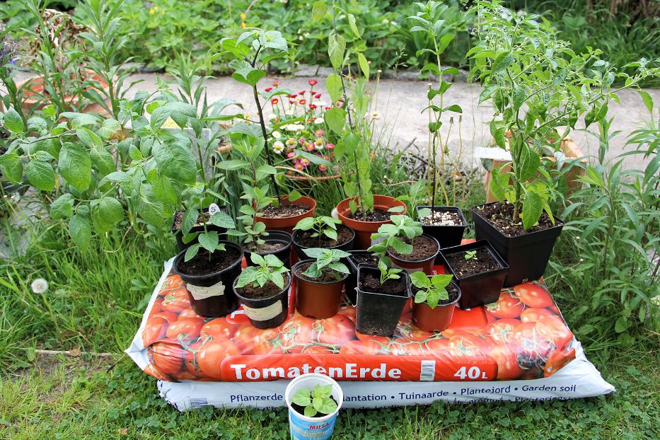 Erbeutet habe ich u. a. folgende Sorten: Bode Roxa, Tepin, Habanero Cappuccino, Habanero Peach Bullet, Limón, Rocoto Riese, NuMex Suave Orange, Bolivian Bumpy und drei verschiedene Minze-Sorten.